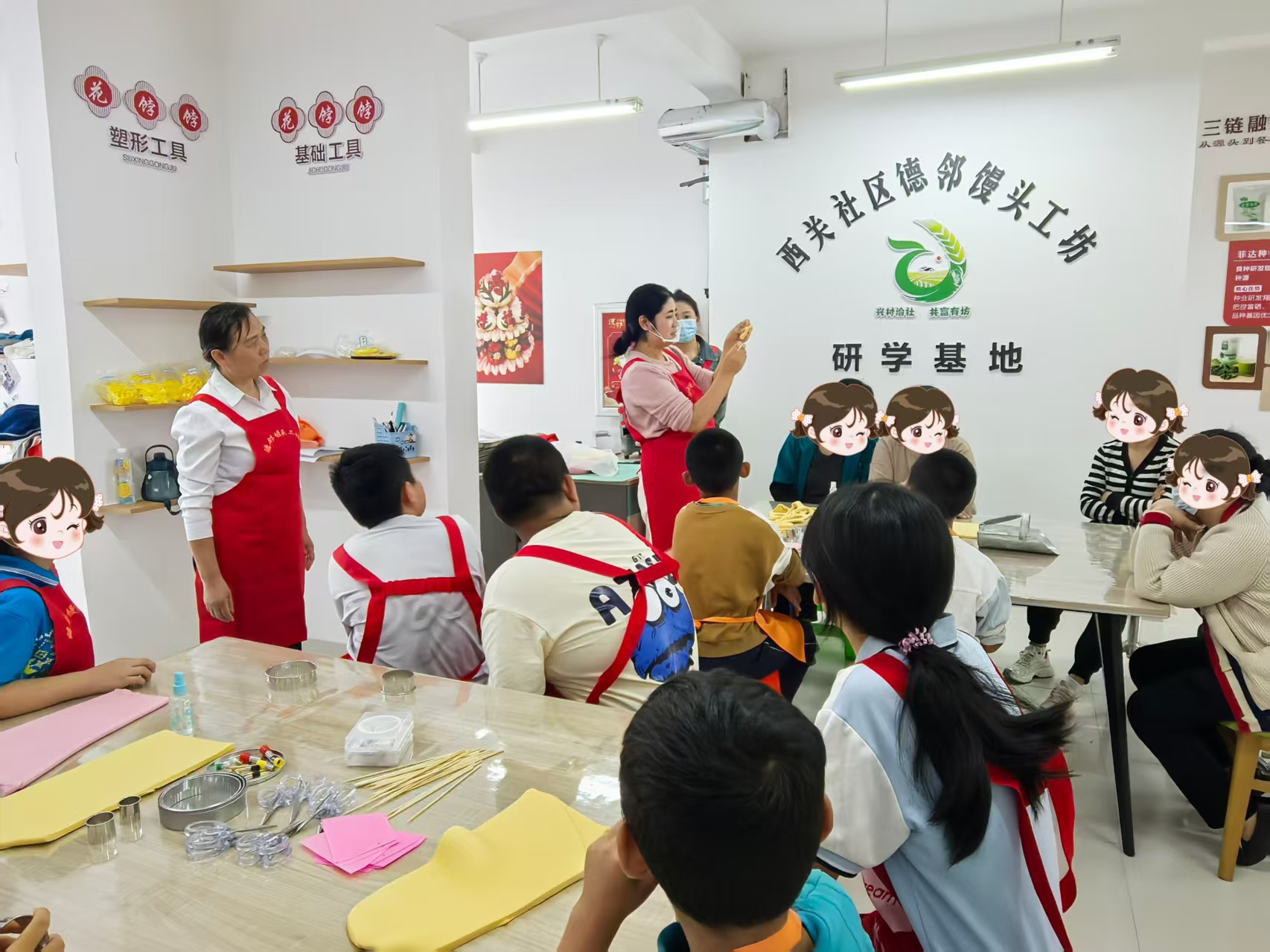 研学过程中,“爱心妈妈”和11名结对帮扶的困境儿童一起参观了“德邻馒头”工坊,互动学习了面点知识,了解了面点的制作过程,精致漂亮的花样面点让孩子们迫不及待地参与体验,从面点的构思、揉压、醒发,最后蒸制出炉,孩子们成就感满满,“爱心妈妈”与孩子们一起交流分享,每一个步骤都充满了欢声笑语。