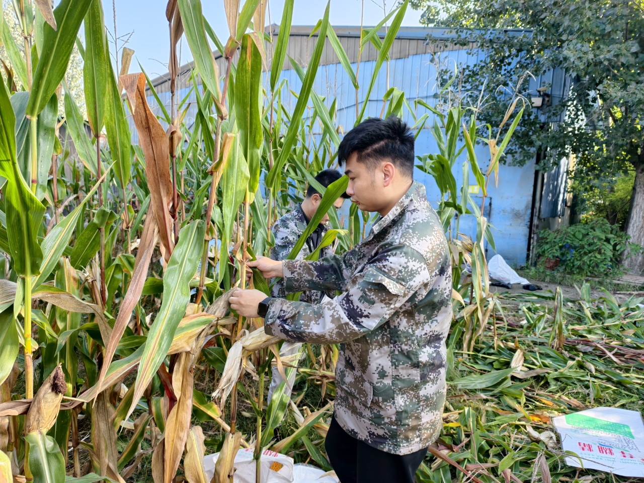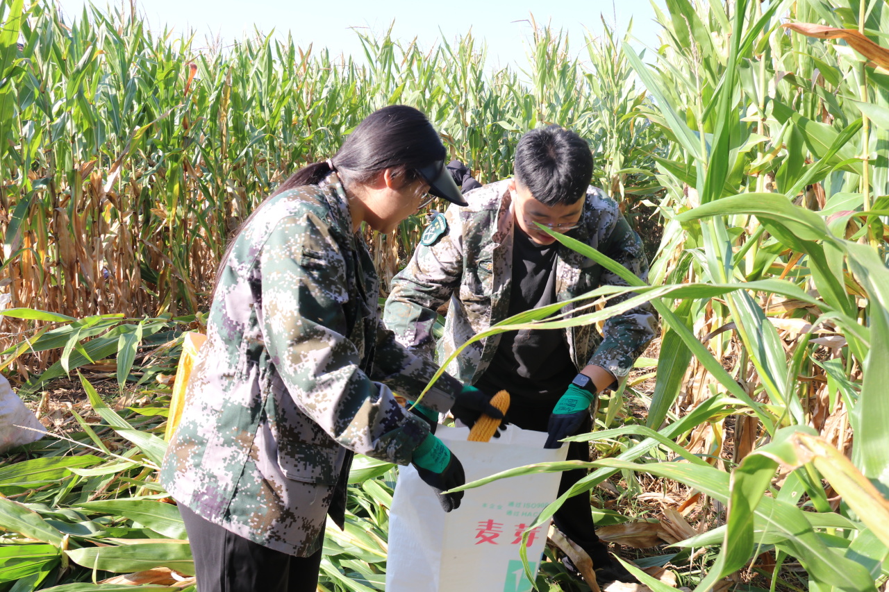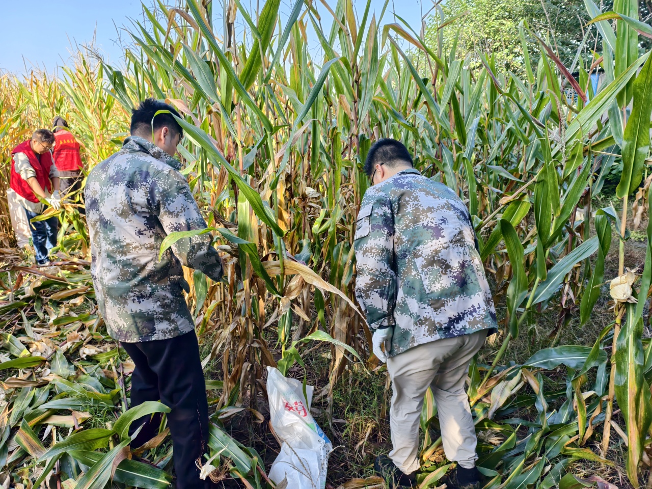 活动现场,基干民兵们划片包干,有序进行掰玉米、装袋、搬运等环节,用实际行动保障秋收进度。