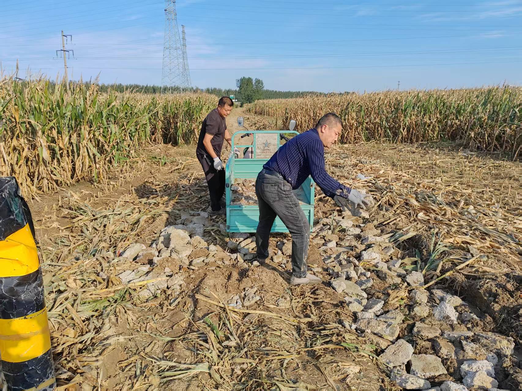 南直社区宋家泊子、栾家泊子于10月15日完成跨村联建后,合力联系企业拉回建筑废料60余车、煤灰10车,铺垫生产路15公里,为附近陈家泊子、郭家泊子等6个村庄解决了秋收秋种期间农机作业难题。