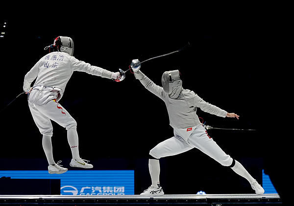 男子佩剑个人决赛中,山东选手魏振浩战胜香港选手获得冠军