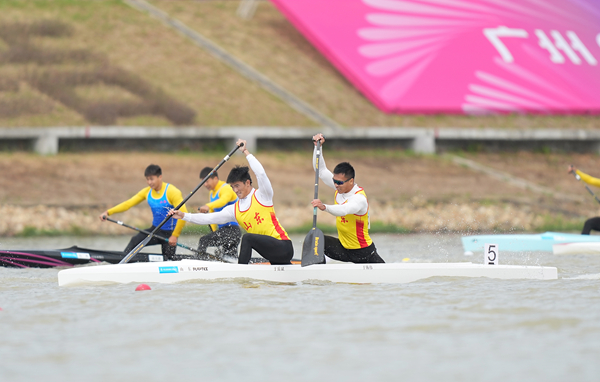 山东队组合于岳斌(右二)/于陈伟(右一)夺得男子1000米双人划艇金牌
