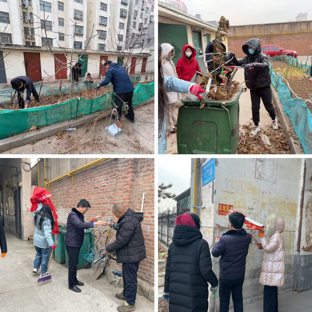 活动现场,干部职工们干劲十足,聚焦老旧小区环境整治的重点难点。大家手持清洁工具,对小区楼道、绿化带、公共区域的垃圾杂物进行彻底清扫,细致铲除墙面“牛皮癣”小广告,规整乱堆乱放的杂物,全力清除卫生死角。同时,向过往居民耐心讲解文明城市建设的重要意义,认真倾听居民对社区建设的意见建议,引导大家从自身做起、从细节做起,主动参与到文明建设中来,营造“人人谈文明、事事讲文明”的浓厚氛围。