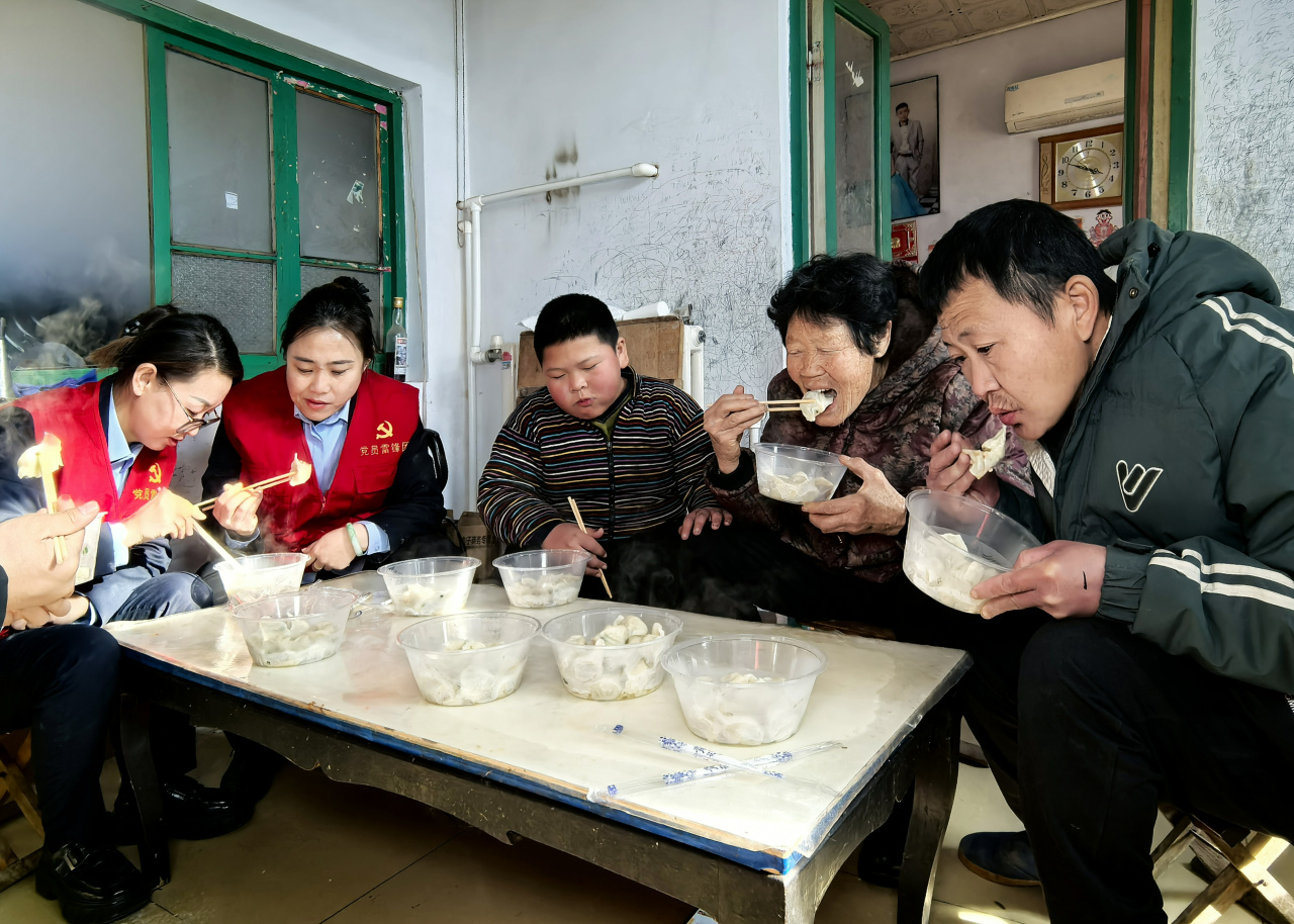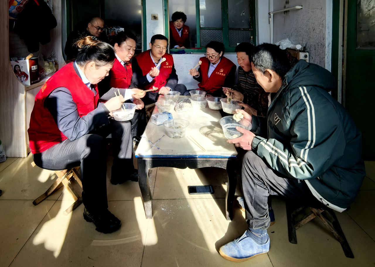 走访过程中,与群众亲切拉家常,详细询问他们的生活近况和实际需求,倾听心声、排忧解难。大家还围坐在一起,分工协作、和面擀皮、调馅包饺,欢声笑语间,一个个饱满的水饺很快摆满了托盘。热气腾腾的水饺端上桌,浓浓的温情弥漫在屋里屋外,让困难群众在寒冬时节深切感受到党和社会的温暖关怀。