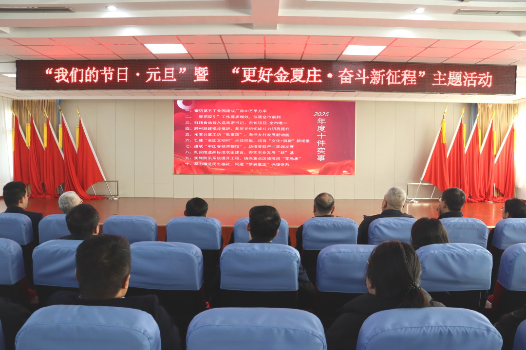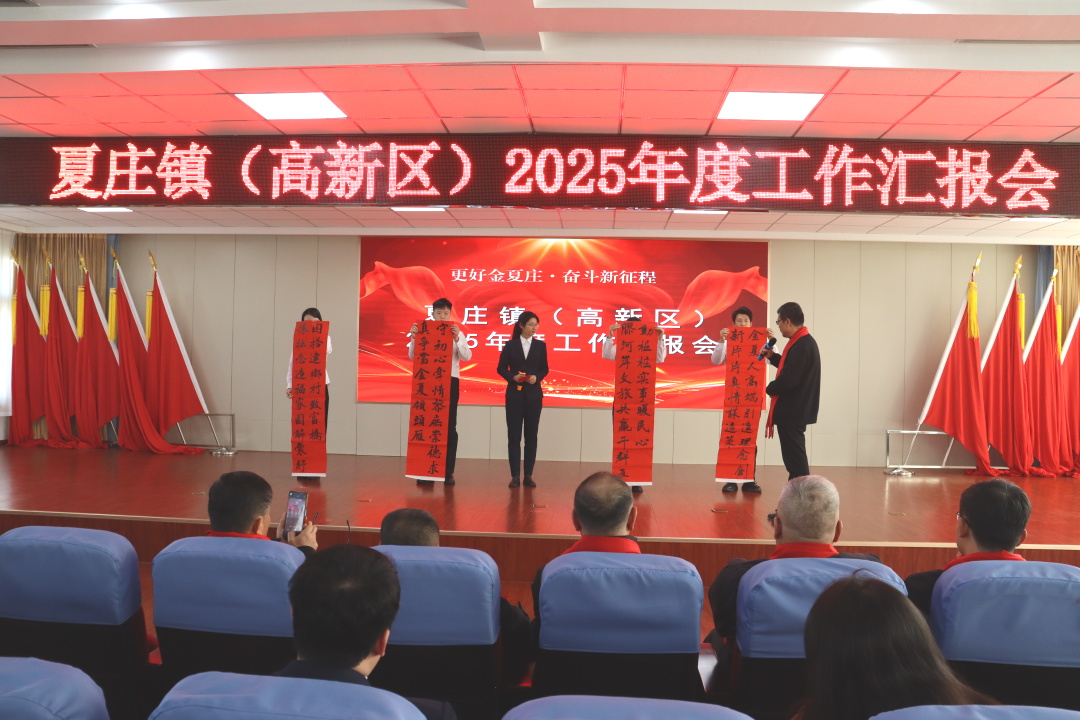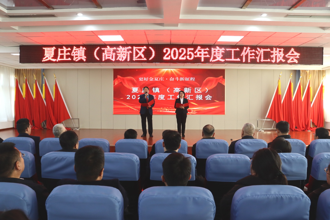 一元复始,万象更新。为凝聚奋斗共识,鼓舞发展士气,12月31日上午,夏庄镇(高新区)召开“更好金夏庄·奋斗新征程”2025年度工作汇报会。邀请市委政策研究中心主任李旭,市委统战部副部长、市侨办主任、市台办主任戴锦,市法院党组成员、副院长展坤祥,市自然资源和规划局党组成员、市储备中心主任刘桂业,市交通运输局副局长崔世兰,市投促中心副主任惠慧,潍坊市融资担保集团驻夏庄镇张家官庄村第一书记汤凯鹏出席,全体科级以上干部、党支部书记、中层干部、社区主任、镇直单位负责人参加。