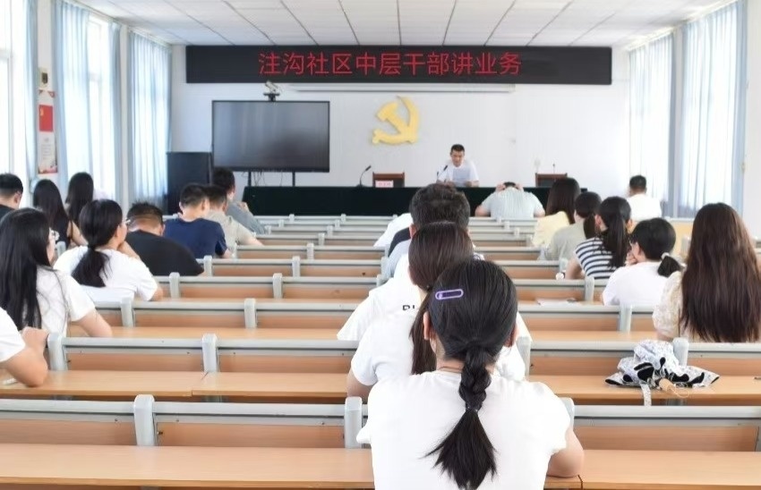 ▲社区中层干部述职评议会议