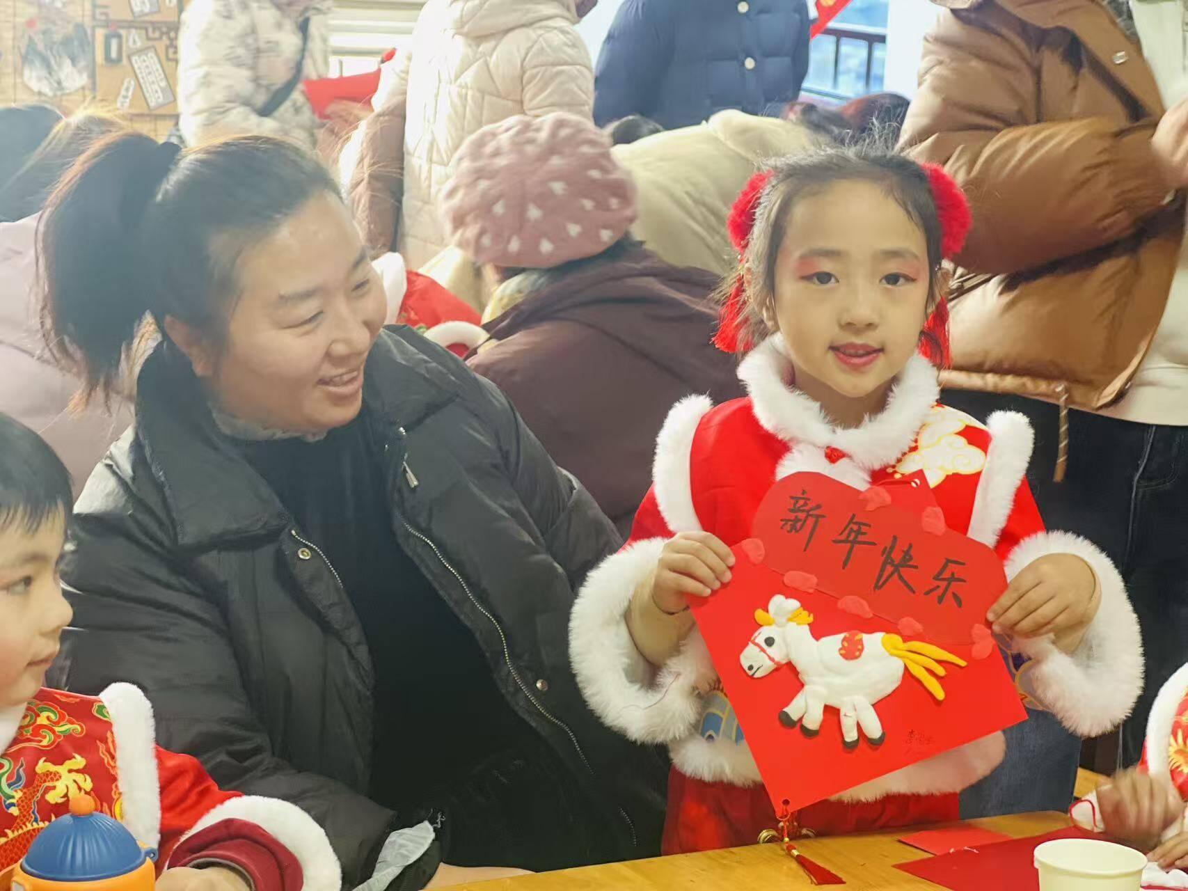 孩子们在舞台上自信展示精彩歌舞,稚嫩童声与活泼舞步洋溢着成长的喜悦。随后开展的特色亲子课程体验环节,家长与孩子携手参与特色课程、趣味游戏等互动项目,体验家园共育的温馨与乐趣。在欢乐祥和的氛围中,家园携手,共同许下对新年最美好的期盼,以奔腾之势,共赴孩子成长的崭新旅程。