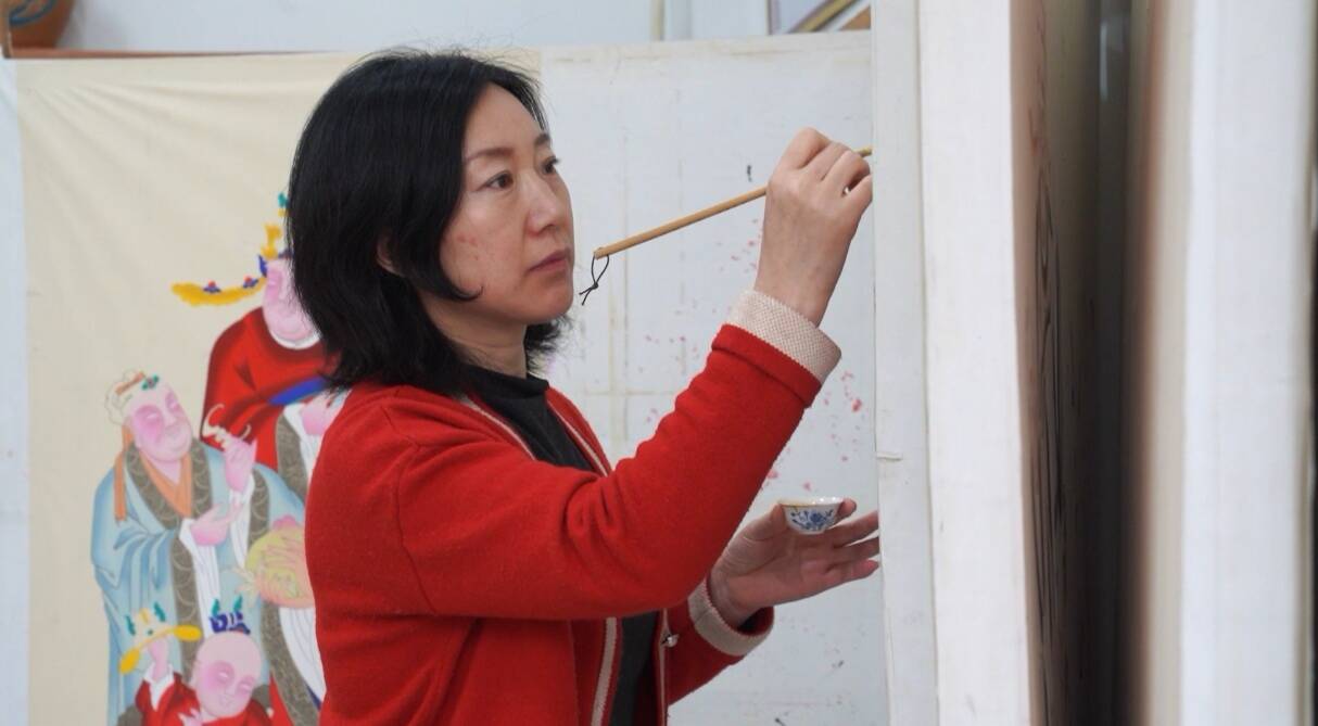 扑灰年画潍坊市级传承人吕红霞说,“高密扑灰年画,是全国独一份的技法,先扑灰再手绘,一笔一画都是祈福,不仅有千年传承,还融入现代审美,运用年画传统元素创作的手机壳、帆布包等,老传统有了新生命,这才是最好的传承。”