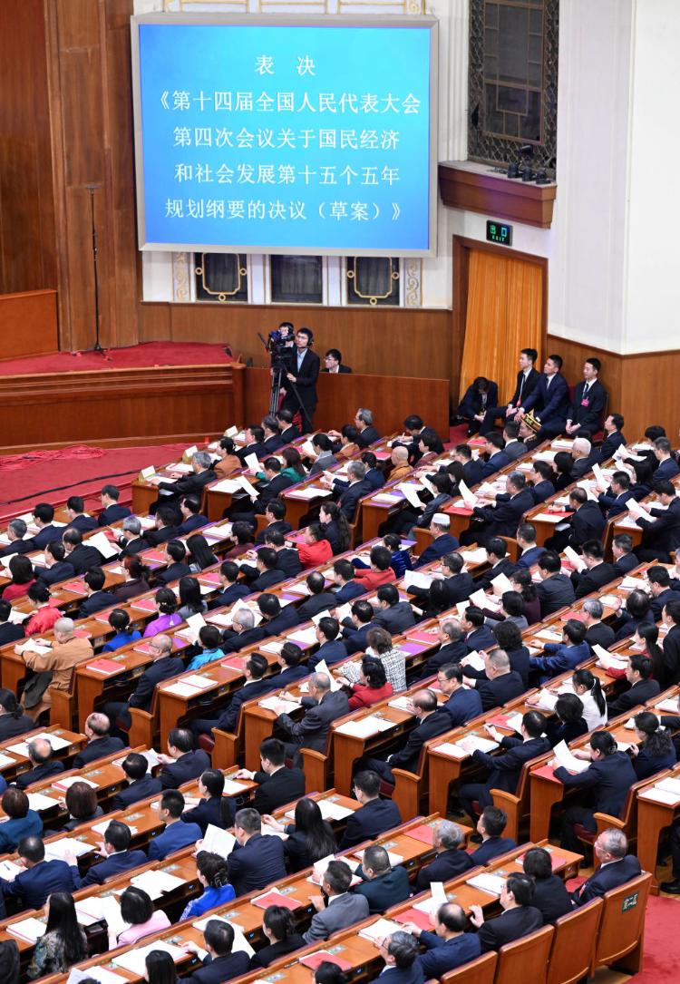 2026年3月12日,第十四届全国人民代表大会第四次会议在北京人民大会堂举行闭幕会。新华社记者 张领 摄