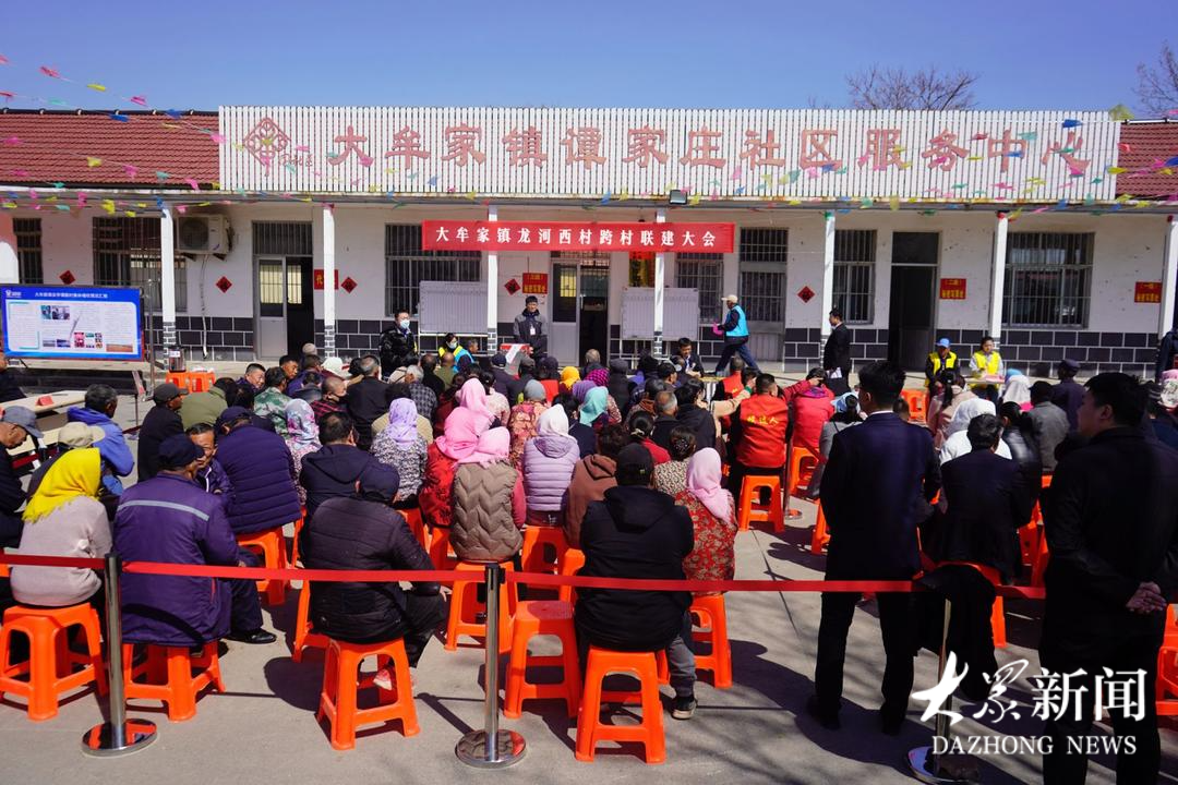 龙河西村举行跨村联建大会。是高密市首个跨村联建试点村。