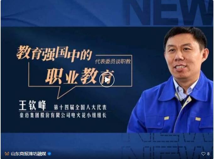 “职业教育是赋能产业升级、发展新质生产力的‘人才引擎’。”近日,第十四届全国人大代表、豪迈集团股份有限公司电火花小组组长王钦峰在采访中表示,我国正由制造大国向制造强国迈进,高技能人才需求空前迫切。