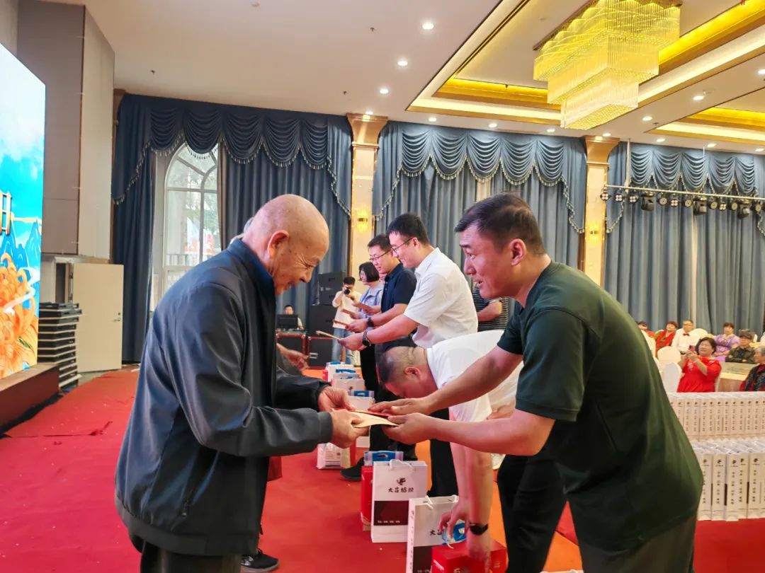 毛家庄社区党委联合辖区“红色合伙人”单位--喜事汇大酒店、大昌纺织有限公司、洗衣先生、天衡医院、古里火锅店、澳海游泳、东牟大肉串等企业单位共同参与活动,并给老人们带来了精美礼品。