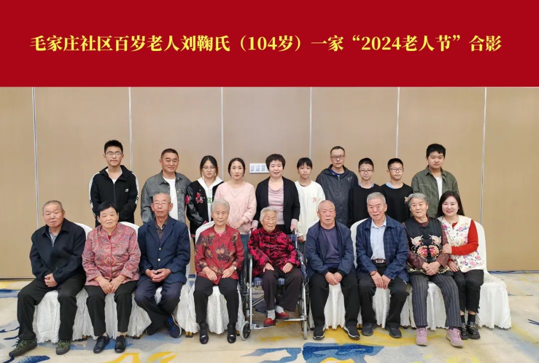 活动首先为社区百岁老人刘鞠氏一家拍摄全家福。刘鞠氏老人1921年出生,今年已经104岁高寿了,是毛家庄社区迄今为止最高寿的一位老人。