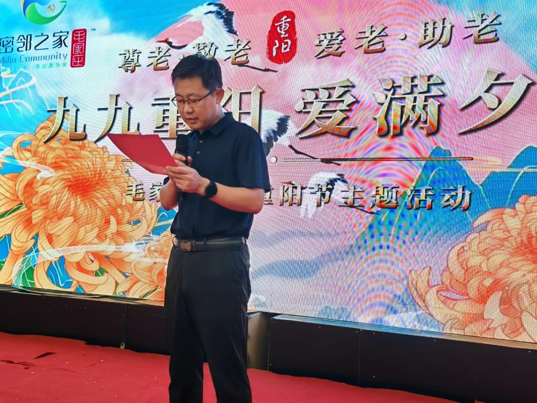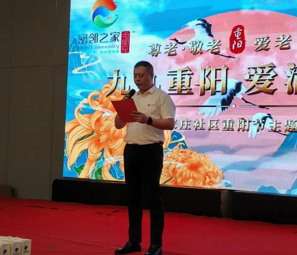 在毛家庄社区庆祝“九九”重阳节座谈会上,密水街道党工委副书记张俊熙、毛家庄社区党委书记刘振、喜事汇大酒店经理褚善忠先后致辞,向老人们致以节日的问候和真诚的祝福。老人们谈变化、感党恩、话发展,共同庆祝自己的节日。