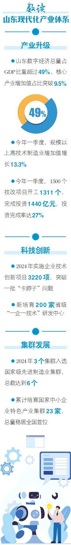 2024年5月,习近平总书记在山东考察时强调,山东在推进科技创新与产业创新深度融合、发展新质生产力、完善现代化产业体系上大有可为。一年来,山东以科技创新引领新质生产力发展,在推进产业体系现代化上先行先试,努力在“大有可为”的征程上“大有作为”:26个省级以上先进制造业产业集群抢占制高点,商业航天、人形机器人、新能源电池等战略性新兴产业制胜新赛道,高质量发展迸发强劲动能。