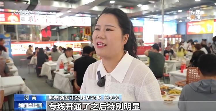 郑州新密市烧烤店老板 位斐斐:专线开通了之后特别明显,这顾客一车接着一车。
