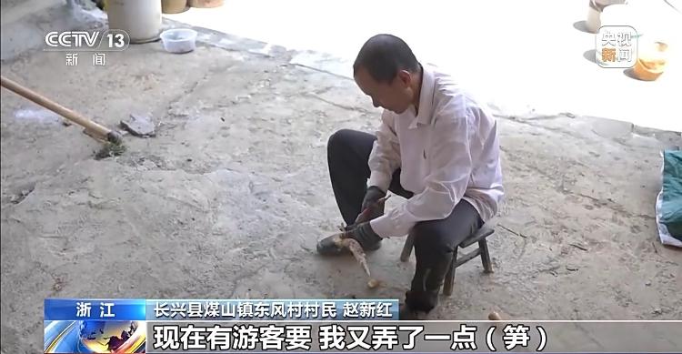 长兴县煤山镇东风村村民 赵新红:感觉很好卖,现在有游客要,我又弄了一点笋,把好一点的挑出来,价格比批发上门收好多了。