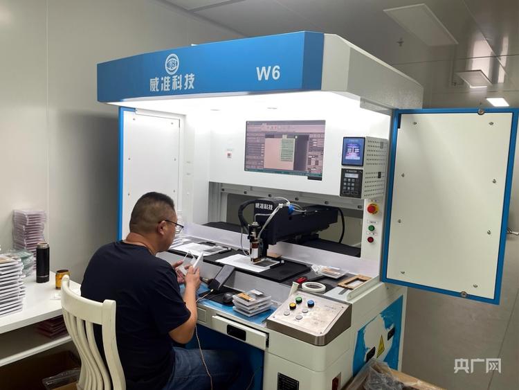 企业车间内的自动点胶机(央广网记者 唐磊 摄)