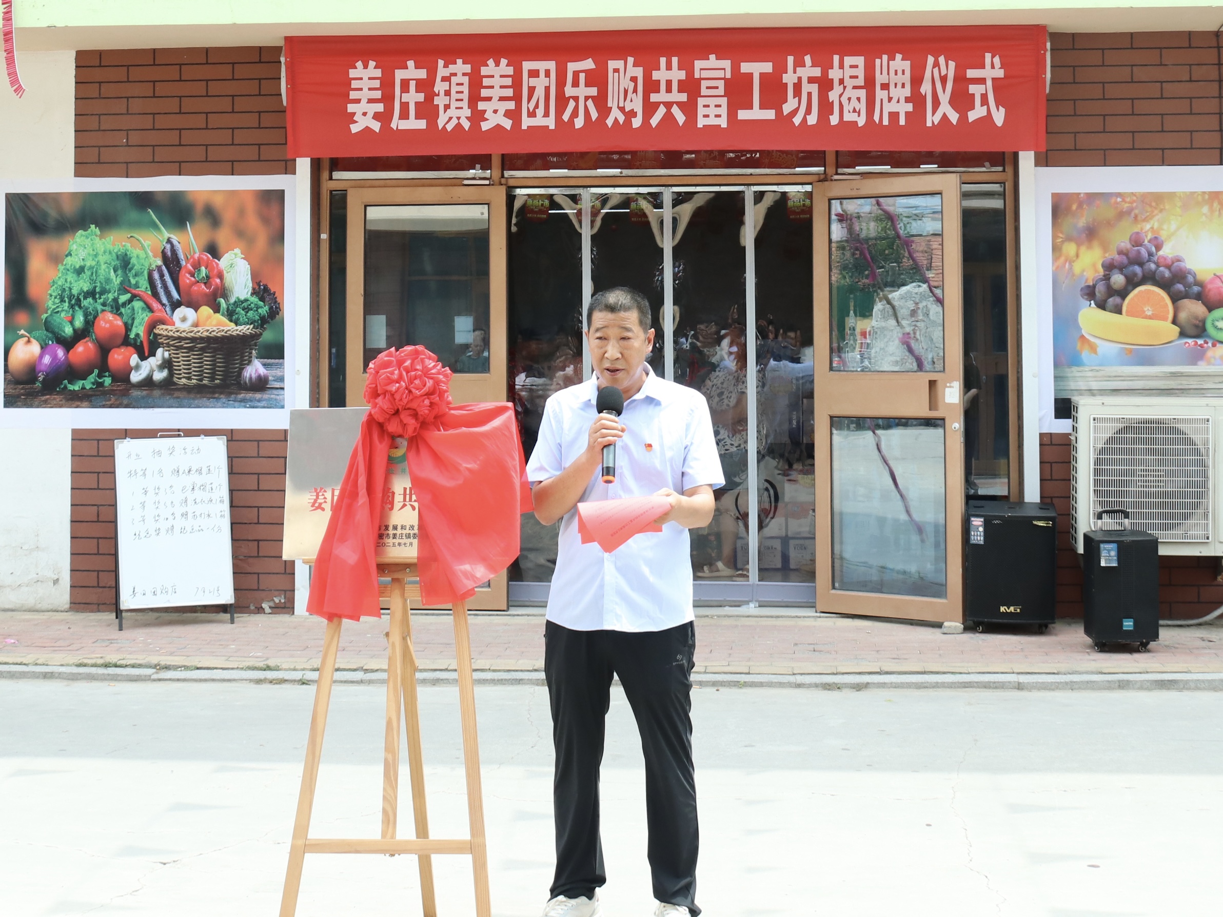 姜庄四村支部书记张吉升主持仪式,并向现场人员介绍“姜团乐购共富工坊”的运营内容和建设意义。今年以来,姜四村不等不靠、开拓创新、自求发展,立足自身资源禀赋、产业特色,科学谋划、精心运作建成“姜团乐购共富工坊”,为村集体经济发展开辟了一条新路子。