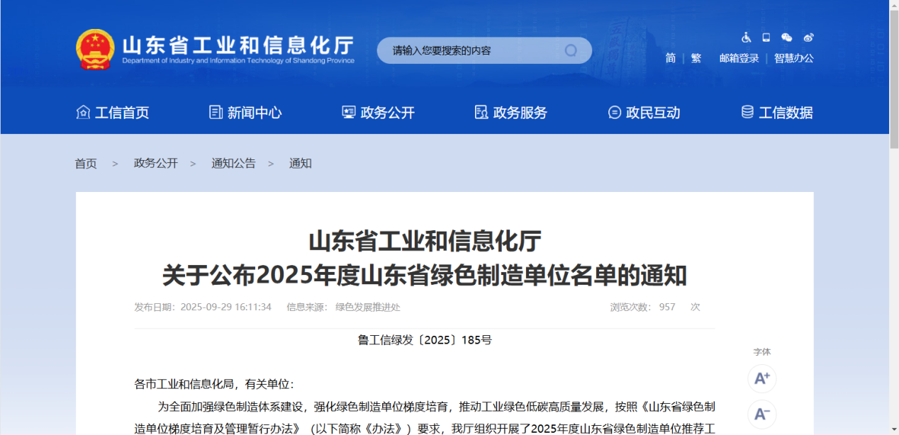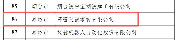 山东省工业和信息化厅于近日发布2025年度山东省绿色制造单位名单,我市两家优秀企业——高密市天福家纺有限公司与星宇新材料股份有限公司凭借其在绿色低碳发展领域的卓越实践和显著成效成功入选!