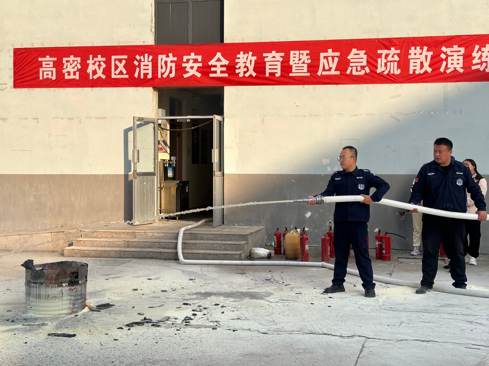 培训结束后,学校在空旷场地设置了模拟火点,在大队宣传员的专业指导下,学校教职工、安保人员以及学生代表纷纷上前,亲身体验了如何使用灭火器及消火栓扑灭初起火灾。这种“零距离”接触和实操,极大地增强了师生们面对火灾时的信心和处置能力。期间,随着应急广播的警报声,在大队宣传员和学校工作人员的引导下,现场开展了实战化的应急疏散演练。参与演练的师生们按照预定的疏散路线,用湿毛巾捂住口鼻,弯腰低姿,紧张、有序、快速地撤离至指定的安全集结区域。整个疏散过程组织严密、配合默契,达到了预期效果。