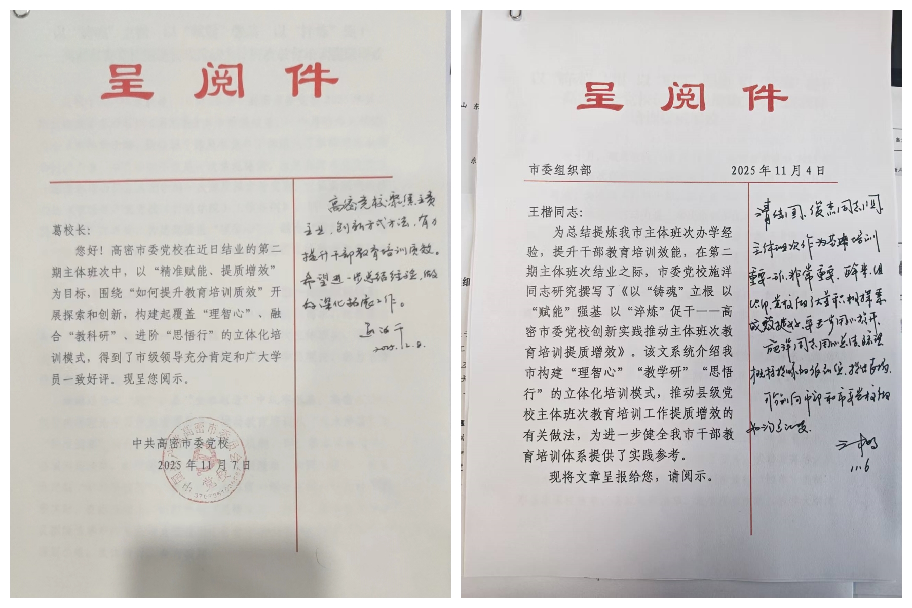 市委高度重视党校工作,切实履行“办管建”党校主体责任,多次专题部署规范化建设,以“三个聚焦聚力”高标准推进各项工作。5月15日,省委党校(山东行政学院)来高调研,对我校规范化办学情况给予高度评价。11月27日,市委常委、组织部部长王楷代表高密在潍坊市党校工作会议作典型发言。会后我校迅速启动“对标学访”,赴临朐、奎文、平度等多地党校交流先进经验,为办学治校提质升级奠定坚实基础。