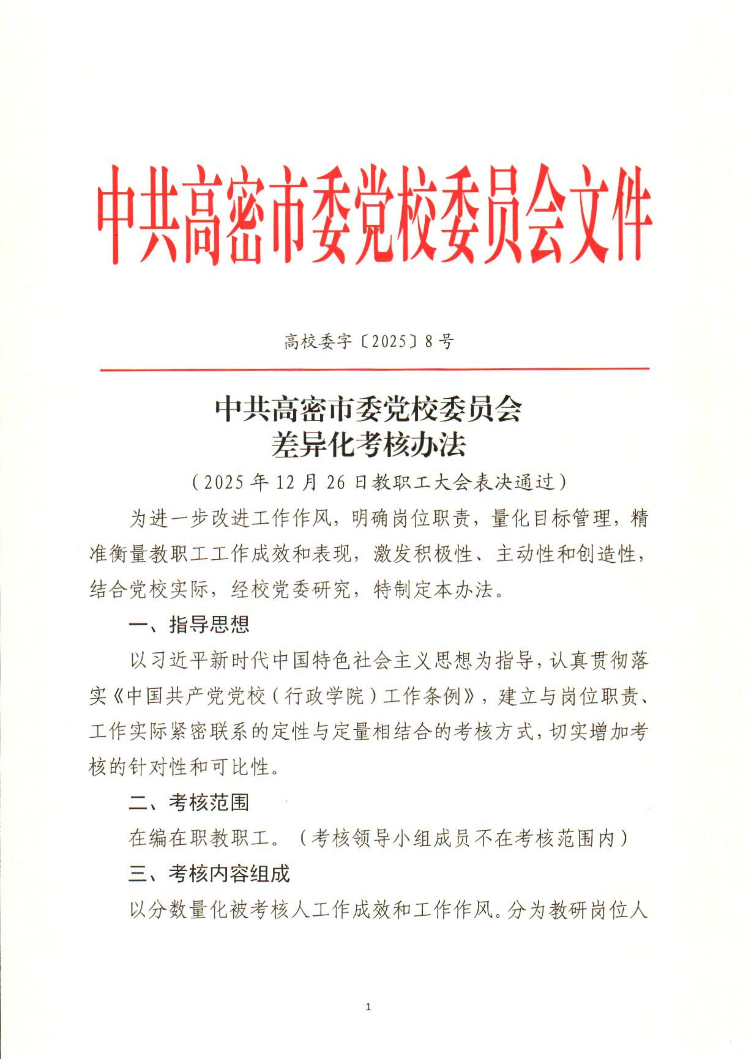 在潍坊党校系统首次创新推行“差异化考核”机制,打破“统一评价”的传统模式,实现从“一刀切”到“精准激励”的转变。立足党校工作实际,结合干部个人特长、岗位职责、工作目标等差异化因素,科学设置考核指标体系,既涵盖教学科研、咨政服务等核心业务,也包含日常管理、群团建设等基础工作,同时推行“月度小结反馈+季度考核排名+年度总结评优”机制,精准衡量评鉴教职工工作成效,有效激发了队伍的创造力和执行力,形成“人岗相适、人尽其才”的良好局面。
