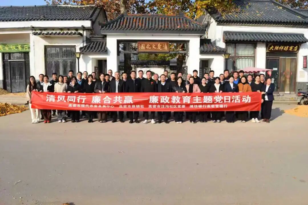 为深化廉政教育、凝聚共建合力、激发队伍活力,11月14日,高密市供销社与潍坊银行高密管辖行、高密市现代农业发展中心、注沟社区党委联合开展“清风同行廉合共赢”主题党建共建活动。市供销社10余名党员参与其中,在廉政文化浸润与户外拓展互动中,筑牢廉洁防线、增进共建情谊,奏响党建引领下的协同发展新篇章。