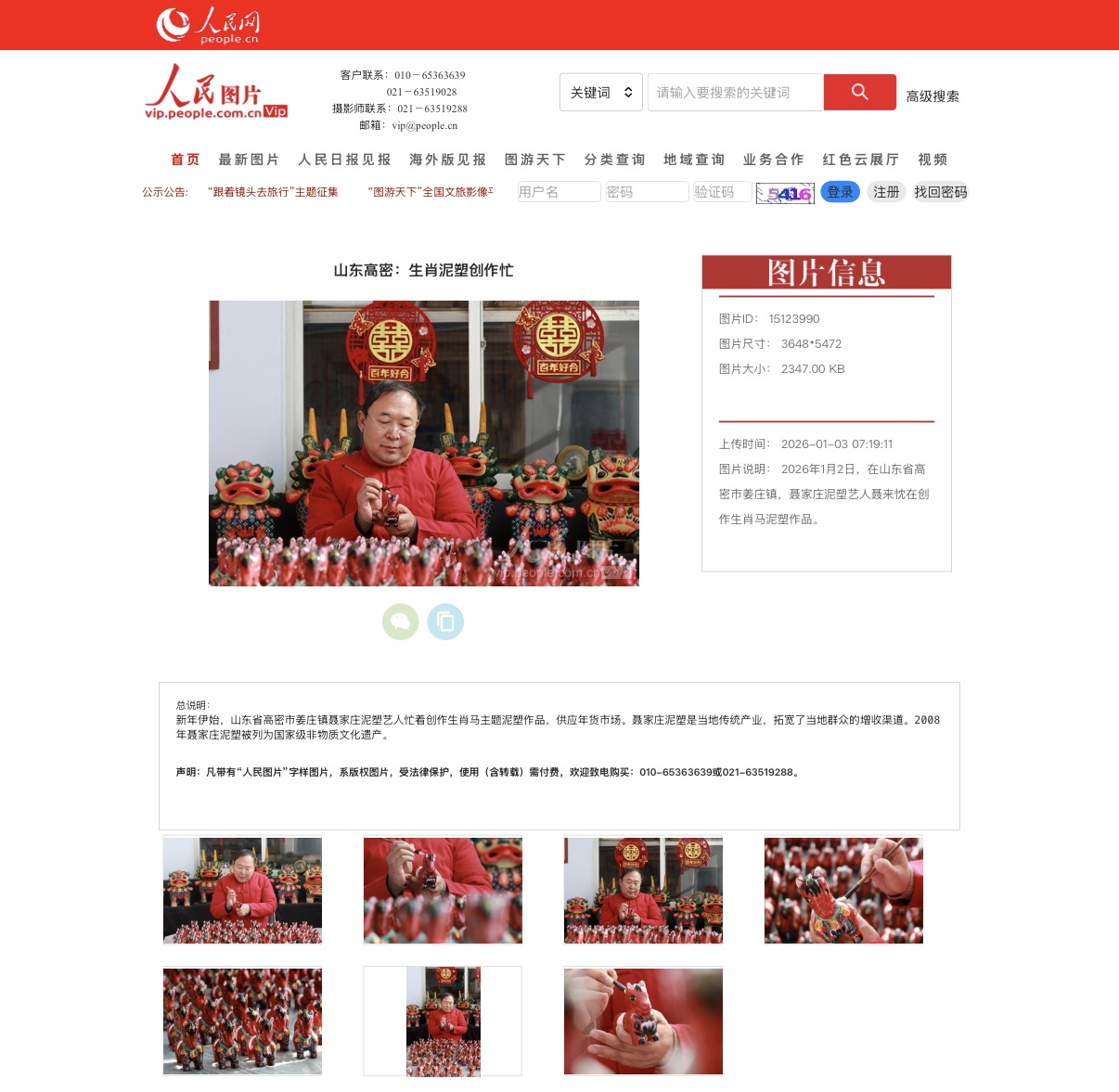 新年伊始,山东省高密市姜庄镇聂家庄泥塑艺人忙着创作生肖马主题泥塑作品,供应年货市场。聂家庄泥塑是当地传统产业,拓宽了当地群众的增收渠道。2008年聂家庄泥塑被列为国家级非物质文化遗产。(李海涛)转自:人民网