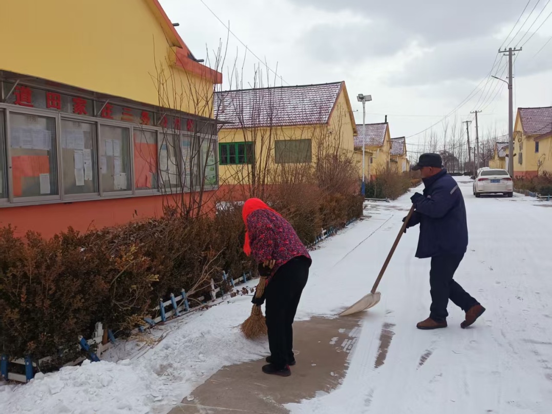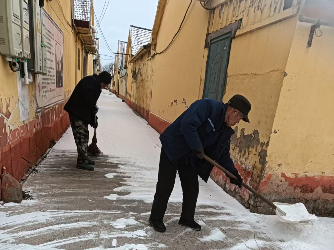 清雪现场,街道机关干部、各村党员干部积极响应、合力协作。大家不畏严寒,手持铁锹、雪铲、扫帚等工具,干劲十足,有序清理主次干道上的积雪。同时,针对农村独居老人等特殊群体,工作人员主动上门帮助清理门前院内积雪,于细微处传递温暖与关怀。