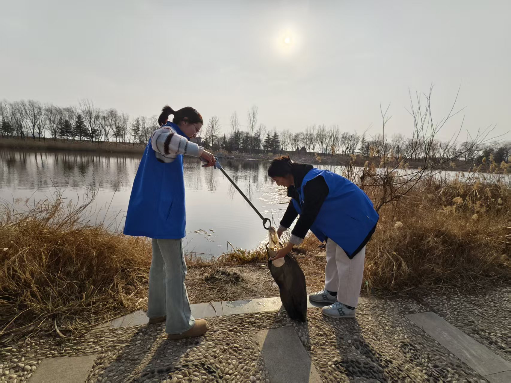 为守护家乡的绿水青山,大学生前往北胶新河开展河湖保洁志愿服务。他们分组沿岸巡查、清理积存垃圾。通过这群年轻的身影将环保意识转化为具体守护,让家乡的碧水清波更显生机。