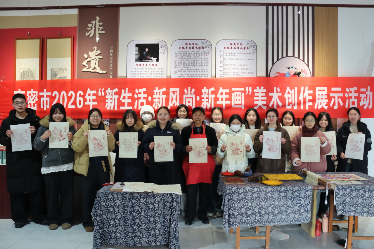 在非遗传承人的带领下,大学生们走进高密市泥塑文化艺术馆,近距离体验木版年画的拓印技艺,每个人都得到了一幅属于自己的“马到成功”。随后欣赏了扑灰年画的独特工艺,聆听聂家庄泥叫虎背后的民间故事,在实践互动中加深了对家乡传统文化的情感认同。