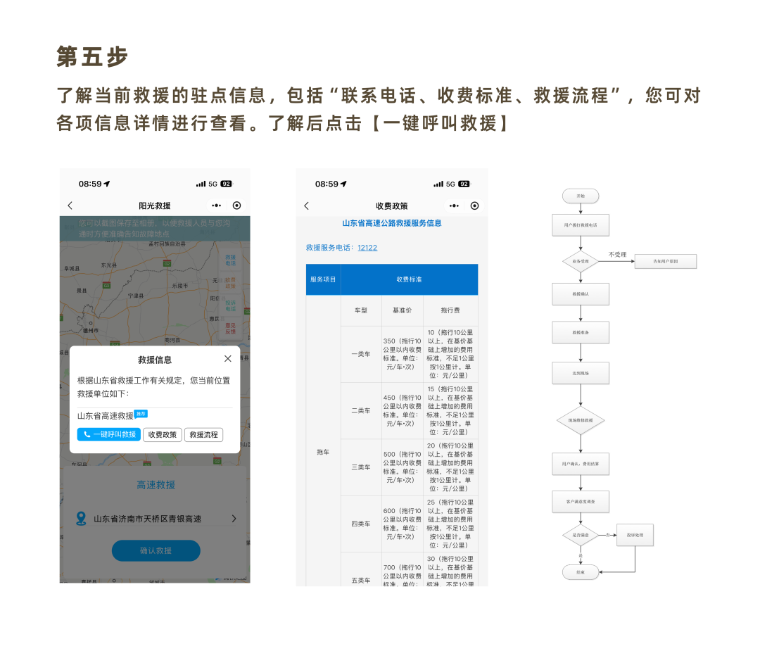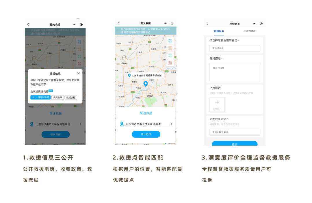 (二)阳光救援,实现高速救援透明高效。针对高速公路车辆故障场景,通过车主定位与桩号系统精准匹配,自动调度就近救援车辆,实现全国高速公路“一键呼救”。救援全程严格执行“三公开”原则,即公开救援电话、公开救援点、公开收费标准,确保服务透明化、规范化,切实保障群众出行安全。