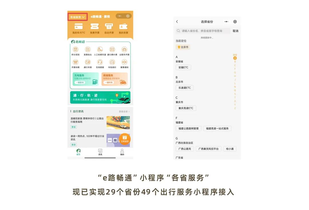 近年来,平台持续优化升级,新增通行费电子发票开具功能,不断拓宽服务渠道,截至目前已接入29个省份的49个出行服务程序,进一步强化部省协同,切实筑牢人民群众美好出行服务保障。