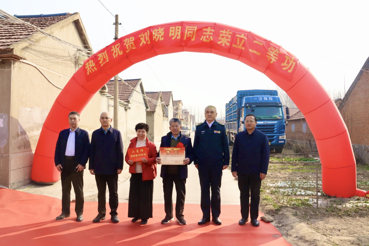 新春将至,暖意融融。2月11日,市退役军人事务局、市人武部联合夏庄镇,为荣立二等功的现役军人刘晓明家庭送上立功喜报,并向立功军人及家属致以崇高敬意与新春祝福。