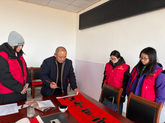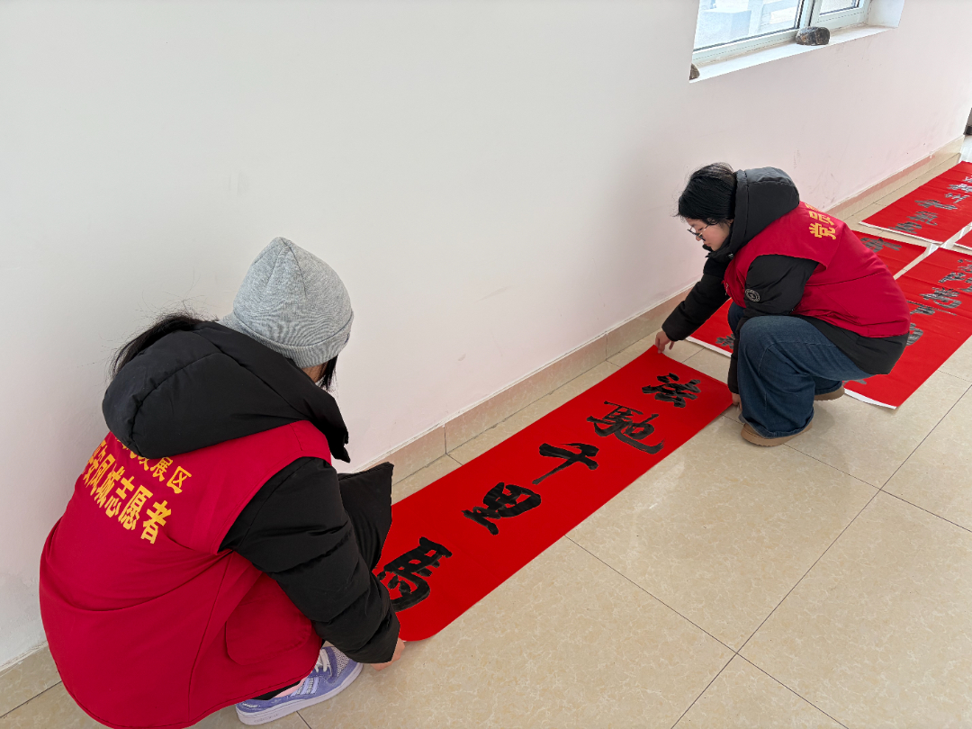 胶河社区将大学生寒假社会实践与新时代文明实践工作深度融合,为返乡学子搭建起广阔的实践舞台。南山社区文明实践所开展“翰墨迎春·情暖万家”书法送温暖活动。活动现场,除了挥毫泼墨的书法家们,还有一群忙碌而热情的“红马甲”——返乡大学生志愿者们。他们细心协助书法家铺纸研墨、晾晒作品,耐心引导居民排队挑选、有序领取。