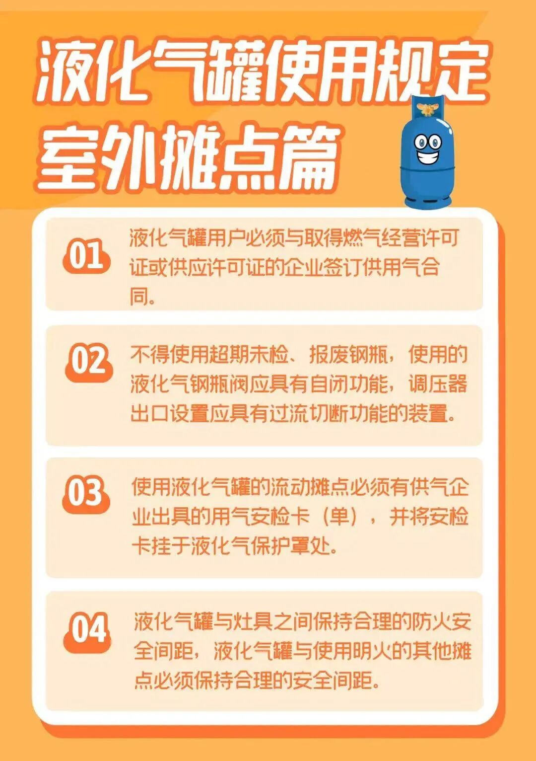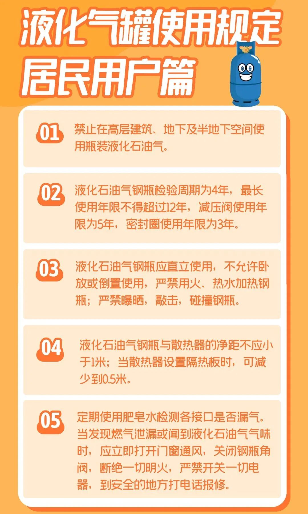 煤气罐也称为液化石油气钢瓶 具有易燃易爆特点 违规操作、气罐储存不当 使用超期限未检验、检验不合格 或者报废的钢瓶等 都可能发生爆炸 1. 严禁跨区作业 液化石油气罐装具有严格的区域管控要求,正规罐装单位需在核定的区域内开展罐装作业,严禁任何单位或个人跨区域进行液化石油气罐装。跨区罐装不仅违反行业监管规定,还可能导致气瓶溯源难、质量无保障,一旦出现安全问题,无法及时追责和处置,给用户带来极大安全隐患。 2. 必须选择有资质、手续齐全的罐装单位 资质认定:正规液化石油气罐装单位需具备《燃气经营许可证》《营业执照》等相关合法手续,从业人员需持有专业操作证件,罐装设备符合安全标准并定期检验。 选择渠道:用户可通过当地燃气管理部门公示的正规罐装单位名单、官方推荐渠道(如官方公众号、客服电话)联系罐装,切勿轻信无资质的流动罐装人员或不明渠道。 权益保障:正规罐装单位提供的气瓶质量有保障、充装量合规,且能提供完善的售后服务,若出现气瓶泄漏、故障等问题,可及时联系处理;无资质单位罐装的气瓶,往往存在充装过量、气瓶不合格等问题,安全无法得到保障。 3. 严禁到“黑气点”罐装 重要警示:“黑气点”是指未取得相关资质、手续不全,擅自开展液化石油气罐装、销售的单位或个人,其罐装的气瓶存在极大安全隐患,严重威胁用户生命财产安全! “黑气点”的危害:“黑气点”使用的气瓶多为过期瓶、报废瓶、改装瓶,充装过程中存在过量充装、掺杂杂质等问题,易引发气瓶泄漏、爆炸等安全事故;且“黑气点”无任何安全保障和售后服务,一旦发生安全事故,用户将无法追责。 识别“黑气点”:“黑气点”通常无固定经营场所,多为流动摊贩或隐蔽仓库,罐装价格远低于正规单位,无法提供正规发票和气瓶检验证明。 举报途径:发现“黑气点”或违规跨区罐装行为,可及时向当地燃气管理部门、市场监管部门或110举报,共同守护安全用气环境。