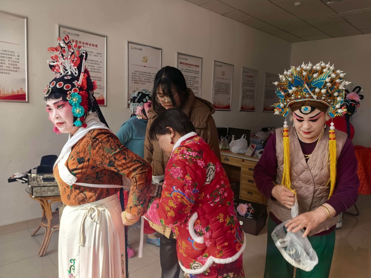 值此马年新春之际,返乡大学生们化身“非遗体验官”与“文化志愿者”,走进新时代文明实践站与社区文化空间,积极参与“非遗在社区 赋彩新生活”马年梨园春声戏曲联欢会。活动中,学子们沉浸式开展茂腔服饰参观整理、戏曲书籍归类等实践环节,并认真聆听老一代表演艺术家讲解茂腔服饰的纹样寓意、制作工艺与文化内涵。在亲身参与与口述传承中,他们以青春视角触摸历史脉络,深切感受传统戏曲的独特魅力与文化底蕴。