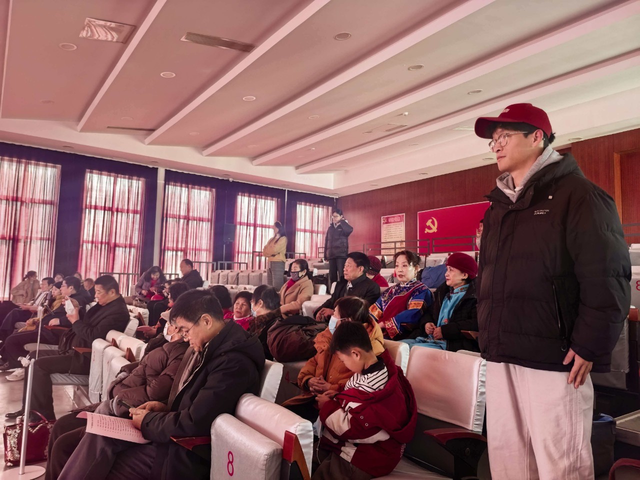 为确保戏曲联欢会的顺利举办,返乡大学生们化身志愿者,协助工作人员维护现场秩序、引导观众有序入座,共同营造和谐、温馨的文化活动氛围。在服务过程中,他们不仅保障了活动的流畅运行,更以志愿服务传递文明观演理念,展现了当代青年良好的精神风貌与奉献意识。