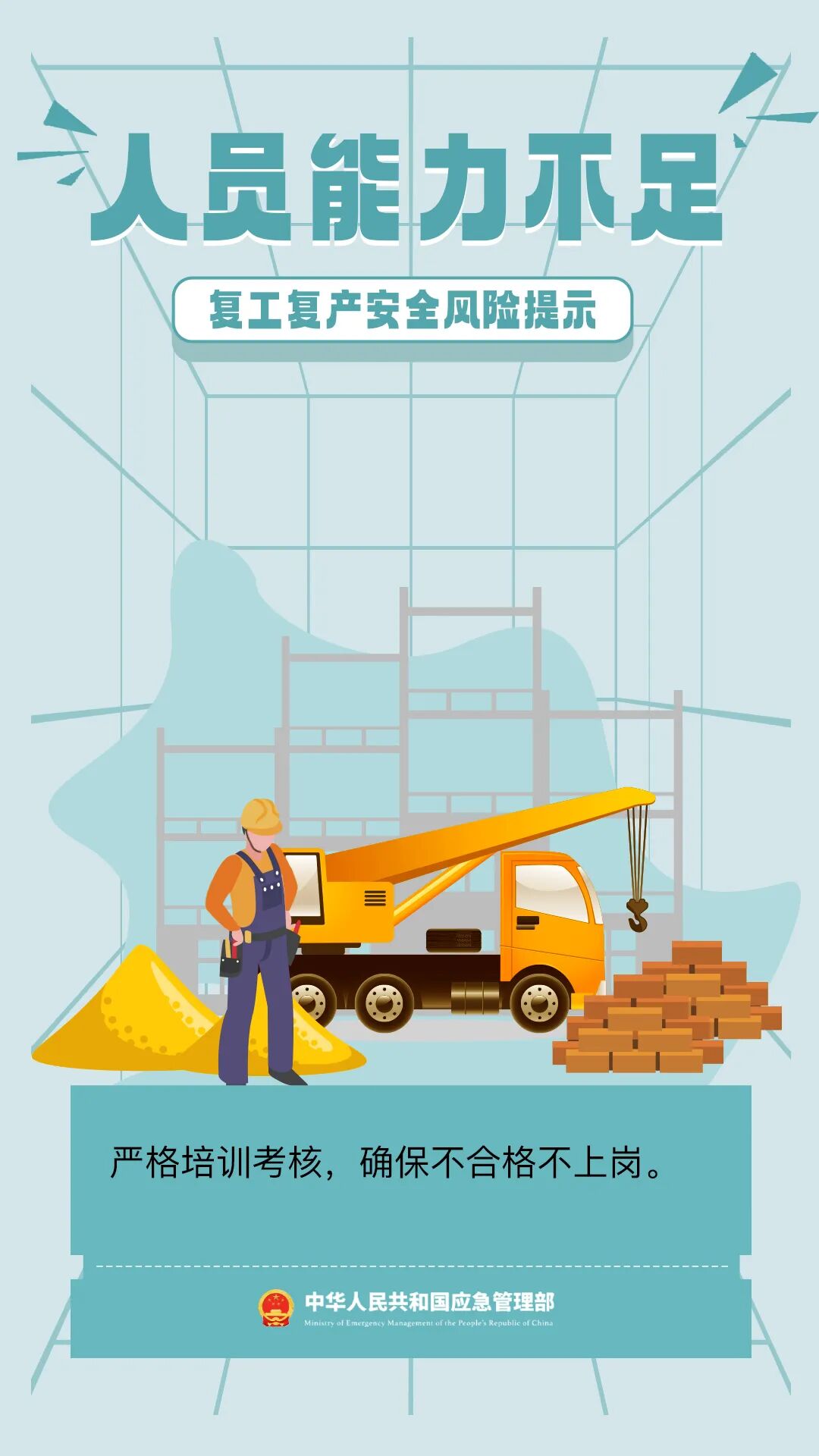 春节假期结束企业陆续按下“启动键”设备重启、人员返岗、思想松懈……复工复产阶段各类风险因素交织叠加是安全生产关键期、事故易发期复工复产要警惕哪些安全风险?企业如何结合自身实际制定安全防范措施?安全复工复产工作这份安全风险提示请收好↓↓↓复工复产前请务必完成“六个一”规定动作↓↓↓来源:应急管理部