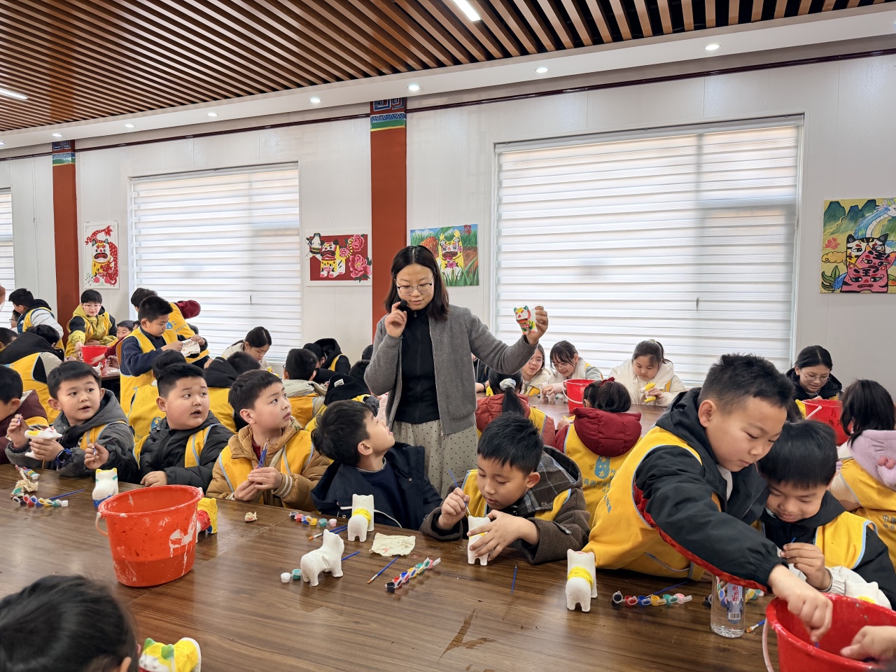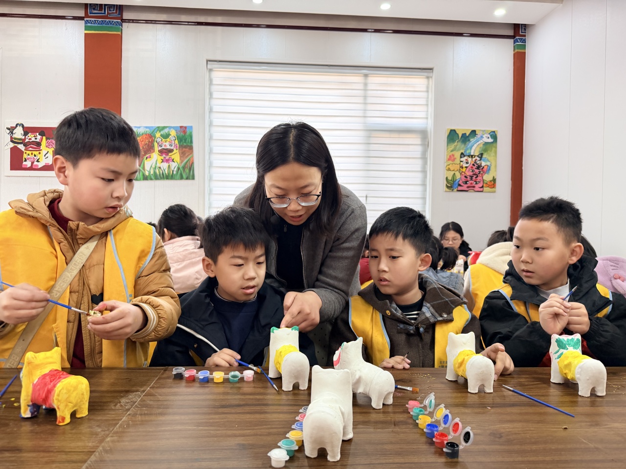 在泥叫虎彩绘体验环节,孩子们围坐一堂,在非遗传承人的指导下,提笔调色、细心勾勒,为泥叫虎白胚披上鲜艳外衣。指尖流转间,一只只色彩鲜艳的泥叫虎跃然眼前。欢声笑语中,传统文化的种子在青少年心中悄然生根发芽。