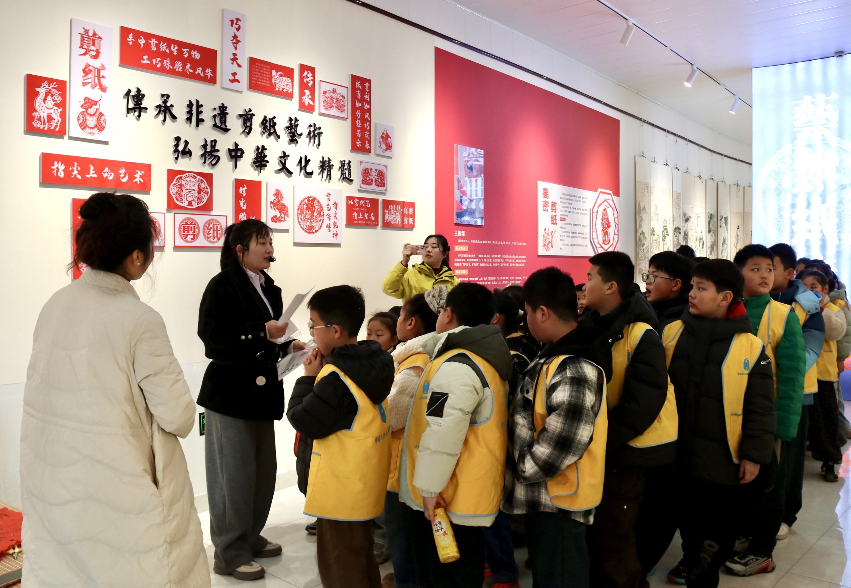 在讲解员的带领下,同学们依次走进扑灰年画、高密剪纸、聂家庄泥塑等主题展厅,认真聆听非遗历史渊源、技艺特点与文化内涵。从一幅幅古朴典雅的年画、一张张精巧灵动的剪纸、一只只憨态可掬的泥叫虎中,大家近距离触摸非遗,感受高密民间艺术的深厚底蕴。