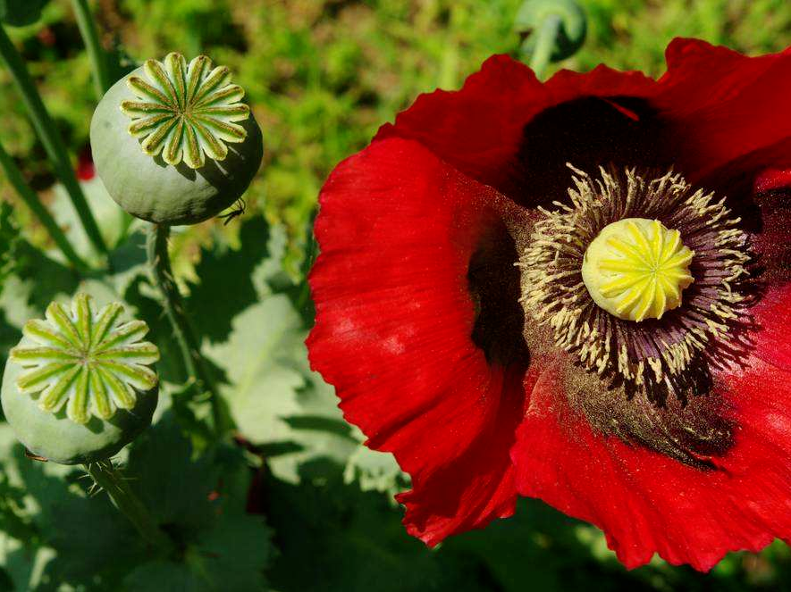 罂粟是一年生草本,叶片碧绿,花朵五彩缤纷,茎株亭亭玉立,蒴果高高在上,夏季开花,花大,单生枝顶。花瓣4片,红色、紫色或白色。果实球形或椭圆形,种子小而多。从其蒴果上提取的汁液,可加工成鸦片、吗啡、海洛因,所以罂粟是世界上毒品的重要根源,因而被称为恶之花。