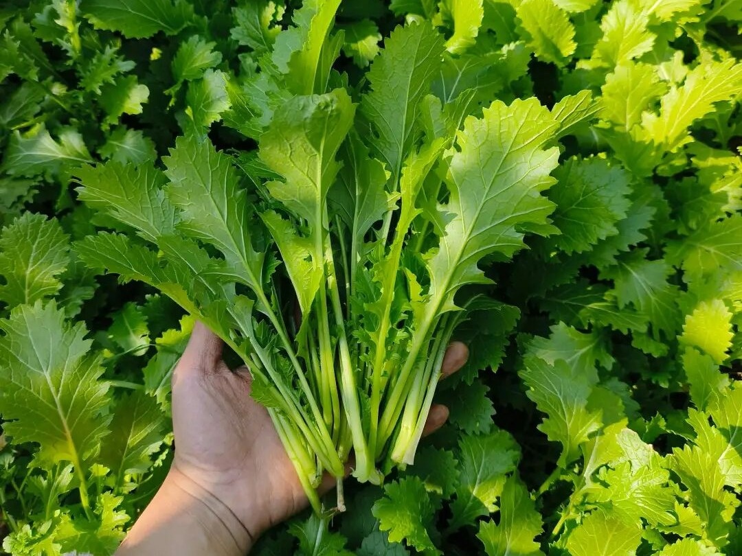 雪里红的叶子边缘锯齿深,形成裂片,顶端的裂片最大,越往下叶子裂片越小,整簇叶子看起来像扇子的形状,而罂粟苗的叶子锯齿是比较均匀的,没有一个大的顶端裂片。