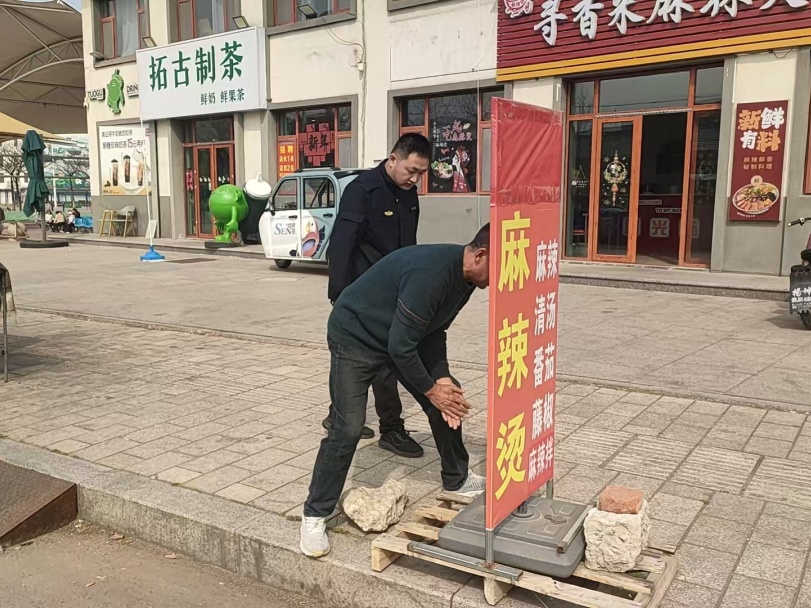 聚焦沿街商铺乱摆乱放、占道经营等重点问题,疏堵结合、服务先行,协助沿街商户清理店外杂物、规范物品摆放,引导商户自觉维护经营秩序,营造整洁有序、和谐文明的经营环境。