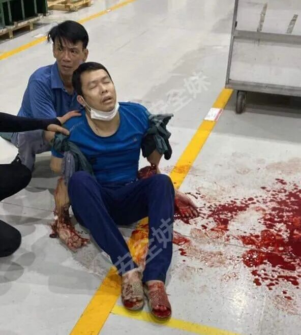 事故2:5月23日,晚上10点13分,某生产车间内,员工将手臂伸进机器时,冲压机突然启动,男子双臂被“斩断”,只剩部分皮肉相连。事发后,同事迅速组织救援,急救人员赶到后将男子送往医院抢救。