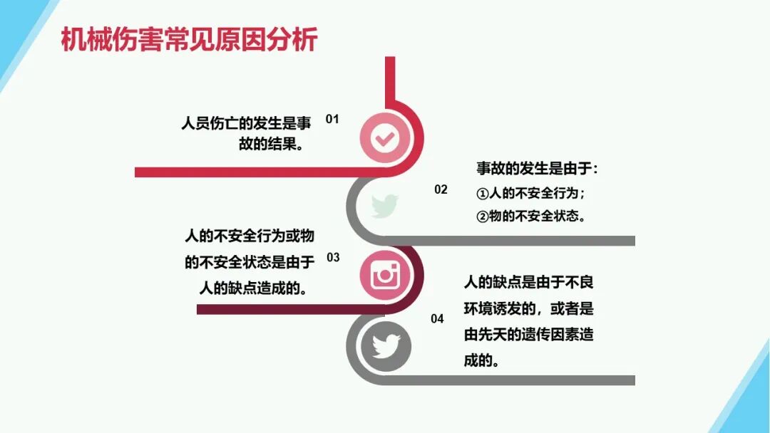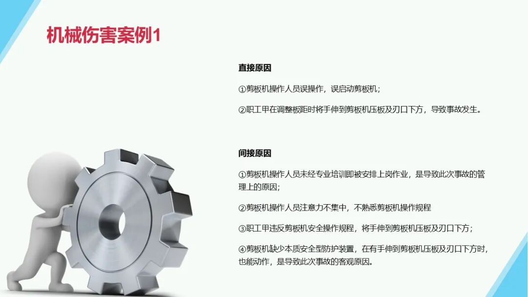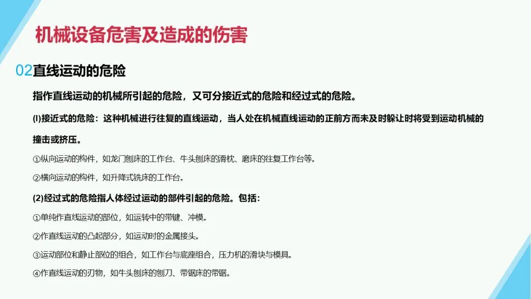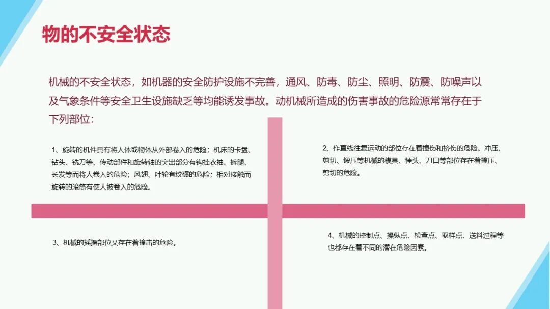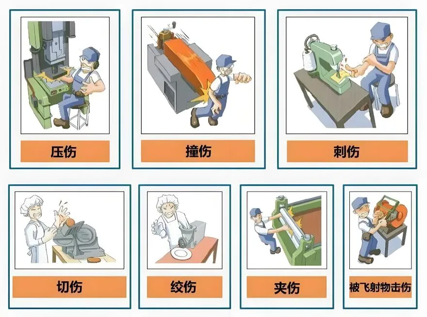 (2)机械设备摆放不当,安全操作距离不足导致挤伤、压伤等。