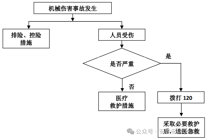 (1)发现有人受伤后,必须立即停止运转的机械,向周围人员呼救,伤势较轻的,立即包扎、止血后,送医院治疗,伤势较重的,医疗人员到现场进行包扎、止血后,送医院治疗。