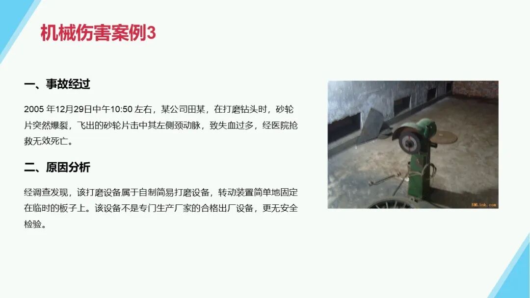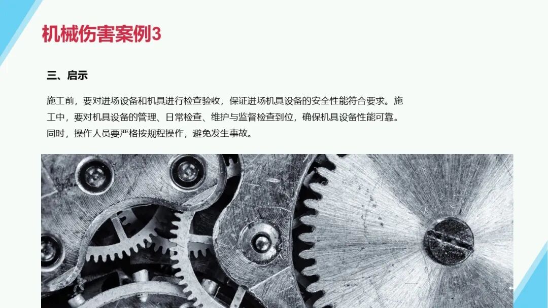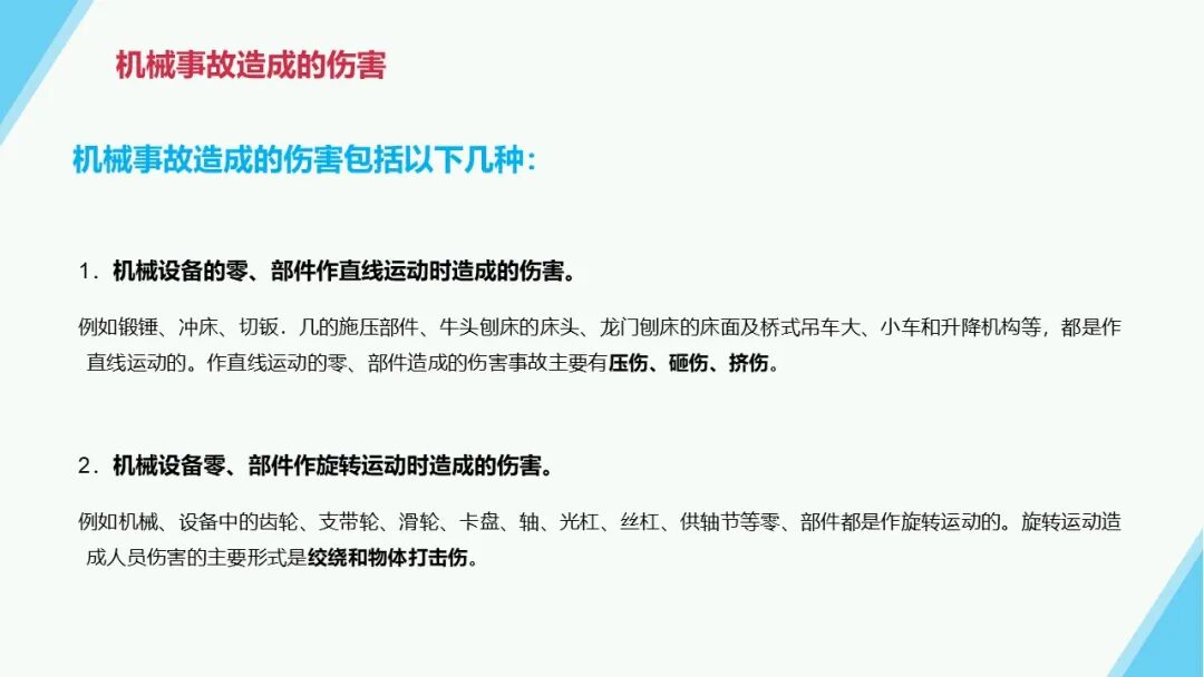 (4)缺乏必要的检修、维护和保养,易导致机械伤害事故的发生。