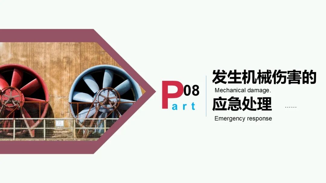 (4)肢体卷入设备内,被卡在设备内,不可用倒转设备的方法取出肢体,妥善的方法是拆除设备部件,同伤者送医院抢救,无法拆除时拨打当地119求救。
