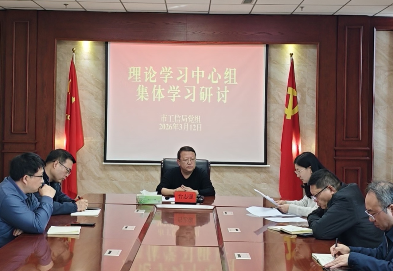 3月12日,市工信局党组理论学习中心组围绕“深学细悟强党性,知行合一建新功”主题开展集体学习研讨,党组书记、局长台志强同志主持并领学,中心组成员参加。